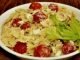 Volcar los tallarines y rodearlos con tomates cortados en gajos.